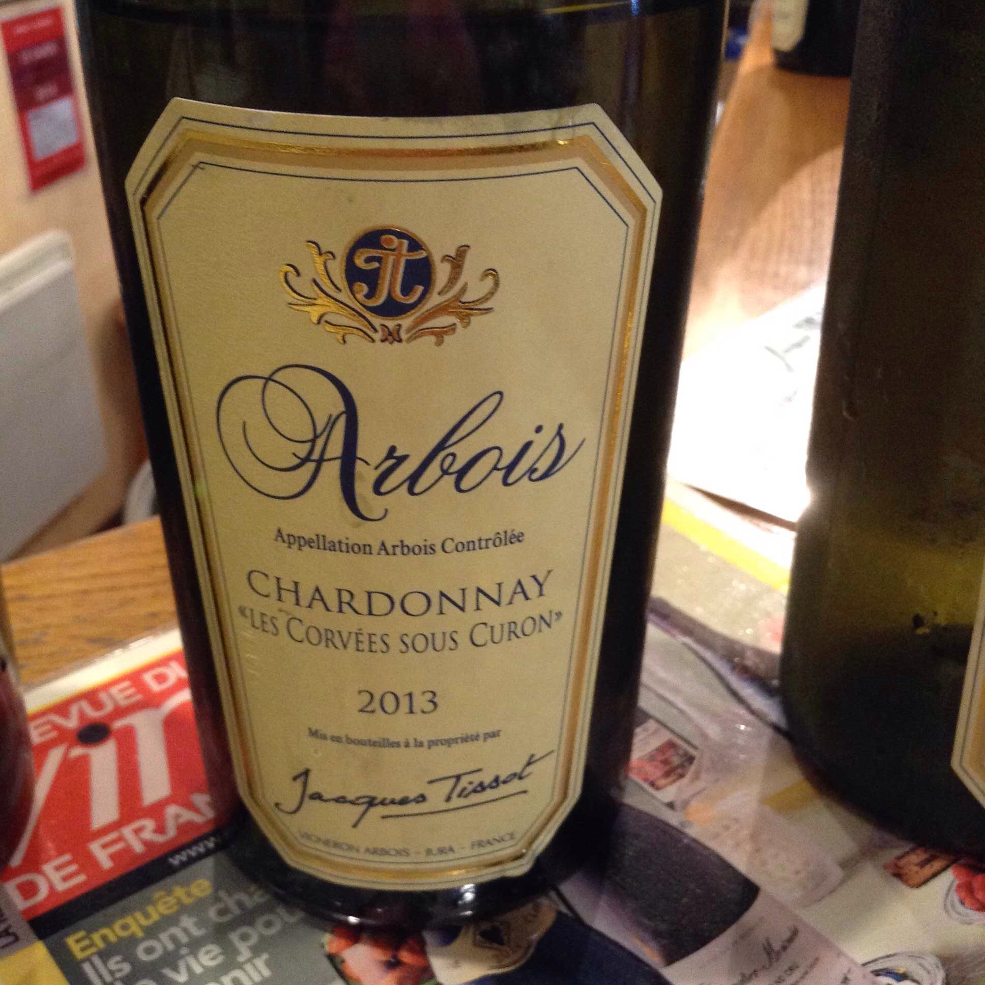 Arbois Savagnin 2010. This wine is aged in oak barrels for 4 years. Would be an ideal partner chicken with morel mushrooms.